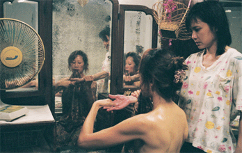 Tsai Ming-liang filme là une forme particulière de désespoir - celui d?un amour qui cannibalise l?autre à son désir. Mise à distance par le jeu des miroirs et des corps filmés de dos, une mère abuse d?une jeune femme pour rendre vie à son fils. Le tout pour un art très sûr de la flûte à deux mains. Un jeu de pouvoir pervers assignant l?autre à la culpabilité, sous l?aller retour mécanique du ventilateur au premier plan, instance narrative truculente et explicite du NON face à la transgression. Une mère symbole du mal doublure de la Reine de la Nuit dans La Flûte Enchantée.